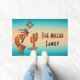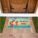 Personalize this Unique "One of a Kind" Southwest Kokopelli Doormat! It Features a Copper Southwest Kokopelli Playing the Flute and Dancing Around a Cactus Under the Sun...on a Turquoise and Orange Sunset Background!