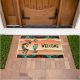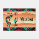 Personalize this Unique "One of a Kind" Southwest Kokopelli Doormat! It Features a Kokopelli Playing the Flute Under the Sun and Dancing Under Around a Cactus on a Desert Background...Surrounded by a Southwest Border in Turquoise, Orange and Black!