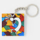 porte - clé acrylique carré double face avec une image en vitrail, des deux côtés, de la divinité Kokopelli.