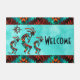 Personalize this Unique "One of a Kind" Southwest Kokopelli Doormat! It Features a Three Kokopelli Playing the Flute and Dancing Under the Sun on a Turquoise Background...Surrounded by a Southwest Border in Turquoise, Orange and Black!