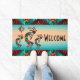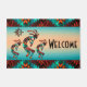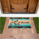 Personalize this Unique "One of a Kind" Southwest Kokopelli Doormat! It Features a Three Kokopelli Playing the Flute and Dancing Under the Sun on a Turquoise and Orange Sunset Background...Surrounded by a Southwest Border in Turquoise, Orange and Black!