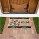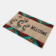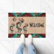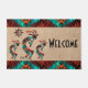 Personalize this Unique "One of a Kind" Southwest Kokopelli Doormat! It Features a Three Kokopelli Playing the Flute and Dancing Under the Sun on a Tan Sandstone Background...Surrounded by a Southwest Border in Turquoise, Orange and Black!