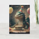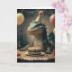 This is an AI generated image. I wanted to have a komodo dragon sitting at a table wearing a birthday hat.