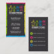 A really cute business card featuring a green, fuchsia, yellow and blue jagged border on front design, same colour social icons on back of card, dark grey back. Four illustrated abstract kids in green, fuchsia, yellow and blue colour. Truly a perfect card for any kids program services, toys, cosmetics, and many other suitable business and personal uses. Highly customizable, you can delete the social icons on back if you prefer just the text or nothing. Personalize the provided text with your desired information.
