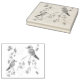 Detailing of two Kookaburra birds surrounded by botanicals and eucalyptus blossoms.