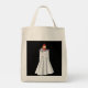 The printing came out very well, better than I had anticipated. The natural color fabric is sturdy with strong seams and comfortable handles. This tote fits easily over my shoulder. As it is filled, the bottom flattens out--very cool! I would buy this product again. This grocery tote holds a lot of groceries! The image quality was very good. The colors were a little darker than I had expected. The darkness may have been due to printing on a natural color fabric rather than on white. The cat design is attractively centered on the tote. The spirit of the design is very lively, just as it appears on the Zazzle website.