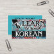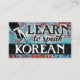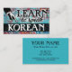 Colourful arty Learn To Speak Korean business cards in turquoise, aqua, red, yellow. Korean language Instruction business cards.