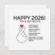 Cute and funny Korean "Happy 2026" New Year card with a simple illustration of a heart finger and a funny phrase about all things Korean culture. This simple yet adorable Korean seollal design makes a nice gift for any Korean, or for anyone who loves Korean culture.