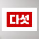 Korean Number 5 Five 다섯 【Daseot】 Hangul Poster
