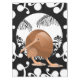 A vector illustration of a Kiwi bird. The bird is framed by a full moon as Kiwi are nocturnal. The background is black and white Maori, traditional koru design. A New Zealand Aotearoa bird illustration.