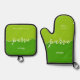 Kosher Kitchen Script Parve with Hebrew Green Oven Mitt & Pot Holder Set