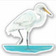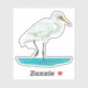 An illustration of a White Heron. These birds are found throughout South Asia, Australia and New Zealand. The Maori name for them is Kotuku. This is part of my New Zealand bird art collection. This is a larger heron, similar to an egret. This bird is drawn in a style that you might see in a children's book. The bird's feathers have threads and stitches.