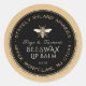 This apiary product label is fully editable. Personalize with your apiary name, location, product description and container size. Black circle on a kraft background and brown text. Heraldic honey bee illustration is a vintage medieval design.