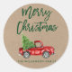 Kraft Brush Script Watercolor Red Vintage Truck with Christmas Tree - Merry Christmas Family Name Envelope Seal