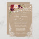 Kraft Rustic Wedding Lights Lace Watercolor Burgundy Floral Invitation