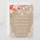 Kraft Rustic Wedding Mason Jar Lights Lace Watercolor Coral Floral Invitation