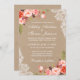 Kraft Rustic Wedding Lace Watercolor Coral Floral Invitation