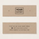 Kraft paper earring mini product display card with centered custom logo template and social media icons. The earring guides can be adjusted by adding and removing spaces in the template field, and by moving the whole element in the design tool.