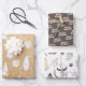 Cute gnome/imp wrapping paper, perfect for christmas or any other occassion. Featuring 3 different designs, kraft paper background with gnomes in shades of grey, white and beige, gnomes and reindeer on white a background and brown background with white script which reads 'MERRY CHRISTMAS'.