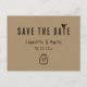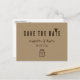 Custom rustic faux kraft paper wedding save the date postcard with an elegant script font title. Ideal save the date for a rustic country, backyard, or barn wedding party.