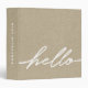 This binder with a kraft paper texture look has trendy, handwritten style script with the word "hello" on the front and simple sans serif typography on the spine. Add your information, and make it your own. Note: The kraft paper texture look is achieved with an image and is not the actual texture of the binder.