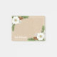 Watercolor spruce sprig, pinecone and white flowers on a kraft paper graphic background with a white border. A rustic winter post-it pad with a customizable calligraphy script name template for you to add a personal touch. Looking for a unique whimsical Christmas stocking stuffer? Personalized floral winter post-its make for a cute and thoughtful gift.