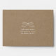 Created to coordinate with the "Christmas Wreath" holiday card collection, this modern envelope features a delicate bow illustration and space for the card recipient's name and address. There is space on the back flap for the customer's address. The inside of the envelope features a coordinating floral pattern made up of poinsettias, leaves, berries, pine cones, and branches on a solid red background.