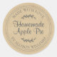 Rustic Script Apple Pie Food Label round stickers feature a warm kraft paper–style background with off-black typography and a classic circular border. The “Made With Love” message and elegant script highlight homemade apple pie, making these labels ideal for bakery boxes, kitchen gifts, holiday baking, farmers markets, and small business packaging. Easily personalize with your details.