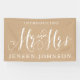 This banner template is designed with a natural brown beige neutral coloured cardboard like background with gorgeous white typography/cursive elegant hand made script overlayed. Mr and Mrs in gorgeous high quality calligraphy makes this an elegant, classy banner to show in the reception area. Especially perfect if the wedding theme is neutral, natural woods and cardboard (white and brown, beige) colour schemes.