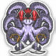 This image depicts a fearsome octopus, styled as a pirate. The octopus has a menacing expression, with wide eyes and a gaping maw. It wears a red pirate hat and is surrounded by its tentacles, which are arranged in a formidable, defensive posture. Two crossed swords are positioned beneath the octopus, further emphasizing its pirate identity and aggressive nature. The overall design is bold and dynamic, with a strong emphasis on colour and detail.