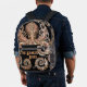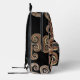 A detailed image of the mysterious kraken with ornate detail in gold and black with swirling patterns on this unique backpack, stand out in a crowd with this piece of the mythical deep. This design was created to embrace mystery and mythology of the kraken.