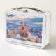 Nice white lunchbox for kids with Krakow twilight, scenic medieval city in Poland.