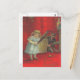 You'll be hard pressed to find an original of this particularly charming postcard of Krampus hiding from a little girl who's one to be reckoned with! A statue of St. Nick sits on a nearby mantle looking on. The original image is great, but this copy is a bit off. The flourish of "Krampus" is cut off. Overall the image looks like it comes from a photograph shot at a slight angle of the original postcard. It has a slightly pixilated look, instead of the classic grainy look these old postcards have. The card you recieve is honestly represented here, but I thought it would look better in person. Overall, it is nice to have any kind of Krampus-meeting his match in a young girl-postcard available to send out during the holidays. The colors are nice and vibrant under a glossy finish. The cardstock is a sturdy weight and the plain white envelopes included are helpful. The size is standard, not too big or not too small. Fun to send out during the holidays to friends "who get it."