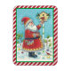 ALWAYS A FRIEND, KRIS KRINGLE SHARES TREATS WITH HIS TWEETS. CHRISTMAS SANTA MAGNET Rectangle, Red/White Stripe Border *Customize ...Look For Matching Items Susan Brack Design