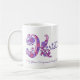 Decorated hand-drawn letter with your own name beginning with the letter K and name meaning mug. Pretty heart and flower capital K doodled typographic design featuring hearts and flowers and the words Kristy Holy follower. Compassionate, bringer of salvation in pink and purple. Other names and matching items are available. © Unique art and design by Sarah Trett for www.mylittleeden.com on Zazzle