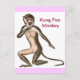Kung Foo Monkey is quite weird. Ever since he got his white belt he has been kung-fooing everything he sees. Last week he kung-fooed a hamburger to death. This Monkey image has been created from a genuine antique print from about 1840. Another fine product from Ann T. Quarian Designs