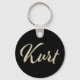 Ein sehr schöner edler personalisierter Button Schlüsselanhänger im whitegold Lettering Look auf schwarz für Kurt.
