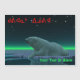A peaceful moment in the long Arctic night. A Polar Bear (Urusus maritimus) rests at the edge of an open area in the pack ice. The Northern Lights glow in the distance; bright stars twinkle overhead. Text reading "Kuvianak Innovia" (ᑯᕕᐊᓇᒃ ᐃᓄᕕᐊ - Merry Christmas), in the syllabic alphabet adopted in Nunavut, also appears in red. Add your own additional text.
