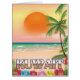 kuwait beach Travel poster of a hot setting desert middle eastern sun setting in the evening, there is a tall beautiful palm tree in the foreground.