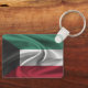 Keychain with the flag of Kuwait in wavy fabric style design. This design features the Kuwaiti flag colours and design with a beautiful waving material textured effect. This flag design is a great way to show you are proud to be from Kuwait.