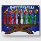 Kwanzaa Candles are a great complement to any home décor. The traditional Red, Black, and Green candles set in a brown Kinara, against a blue background, with the greeting 'Happy Kwanzaa' in ice-blue. Colour scheme is red, green, black, blue, brown and white.