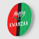 Happy Kwanzaa Typography Red Black Green Stripes Design based on the Kinara Striped Pattern African-American Celebration of African Cultural and Historical Heritage Wall Clock, you can change or delete all text