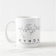 Kyndal spelled out in amino acids as K Y N D A L (Lysine Tyrosine Asparagine Aspartic acid Alanine Leucine) on a mug for the scientist in you.