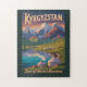 Kyrgyzstan retro vector travel design. From the serene beauty of Issyk-Kul Lake and the rugged Tian Shan range to the cultural heart of Bishkek and the scenic trails of Ala Archa National Park, Kyrgyzstan offers an unforgettable blend of nature, adventure, and tradition.