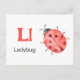 "Letter L is for Ladybug" in our Alphabet Flash Card set. Get all 26 letters of the alphabet! A double-sided postcard that is great for memory games and teaching, geared for education, schools, teachers and homeschoolers for kindergarten and babies. All text is editable if you need to customize.