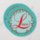 Let your daughter know how much you love and appreciate her with this delightful round Valentine’s Day card featuring a delicate vine with red heart flowers surrounding the word Love on an aqua backdrop.  The back of the card has a customizable verse with place for personal name.  Personalize using the template on the product page.  This card may be purchased in bulk and can be personalized at home.  All you need to do is delete the word daughter in the template.  Then you can write in the name(s) after you receive the cards.