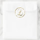 L Monogram Faux Gold Envelope Or Favour Seal. These classic round stickers are printed with non metallic ink on a flat sticker to look like gold. They are not beveled or embossed monograms but are designed to look like they are beveled or embossed monograms. These gold monogram seals are printed on a white background unless you select a different colour background before you proceed to checkout. In addition to being pretty wedding stationery supplies, these elegant wedding invitation envelope seals also make great monogrammed custom Christmas card seals, personalized holiday greeting card envelope seal stickers and customized Xmas card monogram seal stickers.