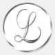 L Monogram Faux Silver Envelope Or Favour Seal. These classic round stickers are printed with non metallic ink on a flat sticker to look like silver. They are not beveled or embossed monograms but are designed to look like they are beveled or embossed monograms. These silver monogram seals are printed on a white background unless you select a different colour background before you proceed to checkout. In addition to being pretty wedding stationery supplies, these elegant wedding invitation envelope seals also make great monogrammed custom Christmas card seals, personalized holiday greeting card envelope seal stickers and customized Xmas card monogram seal stickers.