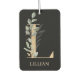 Letter L monogram floral. Letter L in golden brown texture accented with green watercolor compound leaves, flower blossoms and gold dust. Personalized with name in matching font.