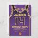 Celebrate your special day with this Basketball Jersey Birthday Invitation, designed for true basketball fans! Featuring a bold jersey design inspired by the iconic purple and gold colours, this invite is perfect for kids, teens, and adults who love the game. Personalize it easily with your name, age, party details, and even team number in just a few clicks. Available in multiple sizes, printed on premium quality paper with a wide range of finishes to match your style. Choose from different paper types, fast printing, and quick shipping so your invitations arrive on time. Whether it’s for a sports-themed party or a Lakers fan celebration, this invite is the perfect way to get your guests excited.